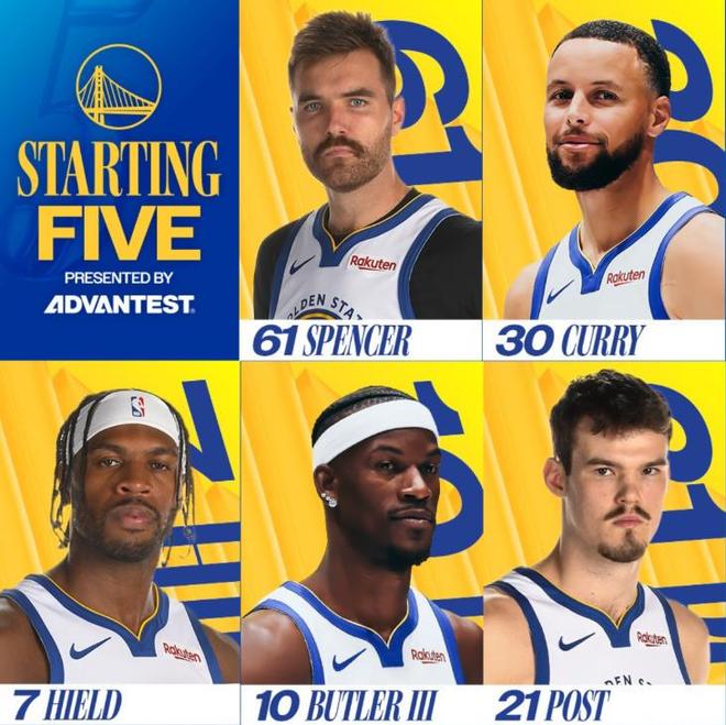 库里39分5板5助、波斯特16分6板3助、巴特勒15分8板5助、斯潘塞12分5板4助2断、穆迪11分4板2助3断、梅尔顿9分2板1助、戴维斯8分7板1助2帽、希尔德6分2板2助、波杰姆斯基2分2板4助、桑托斯2分1板